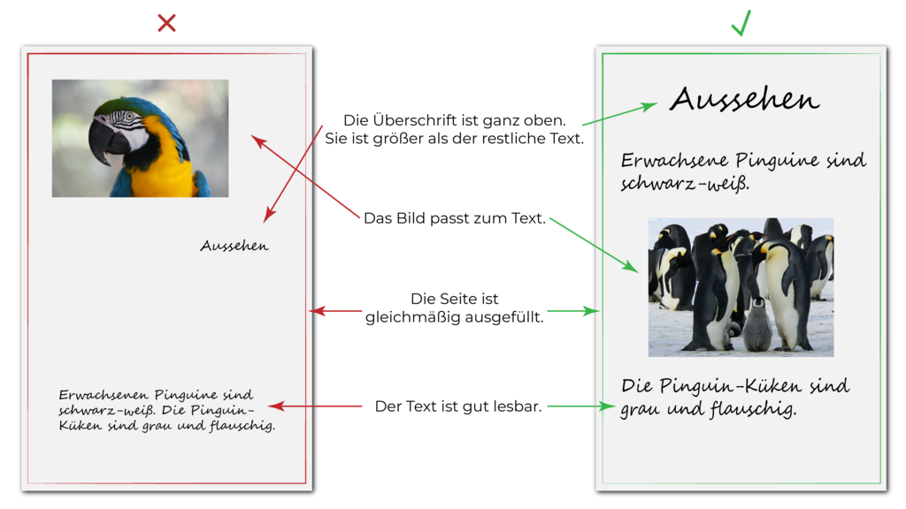 Das Layout links ist noch nicht gelungen. Das Layout rechts ist gut.