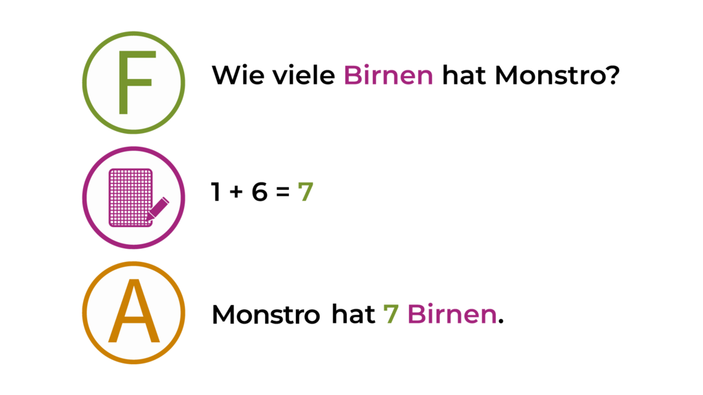 Der dritte Schritt ist: Finde und löse die Rechenaufgabe
