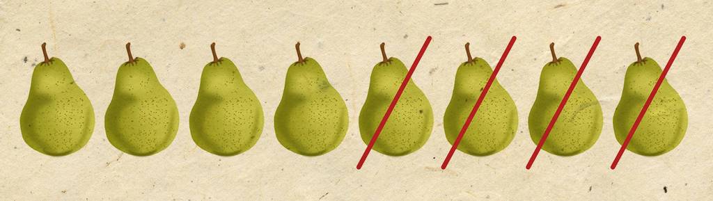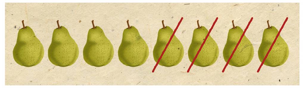 Du kannst auch im Rechenheft zeichnen. Für jede Birne malst du dann ein Kästchen an: